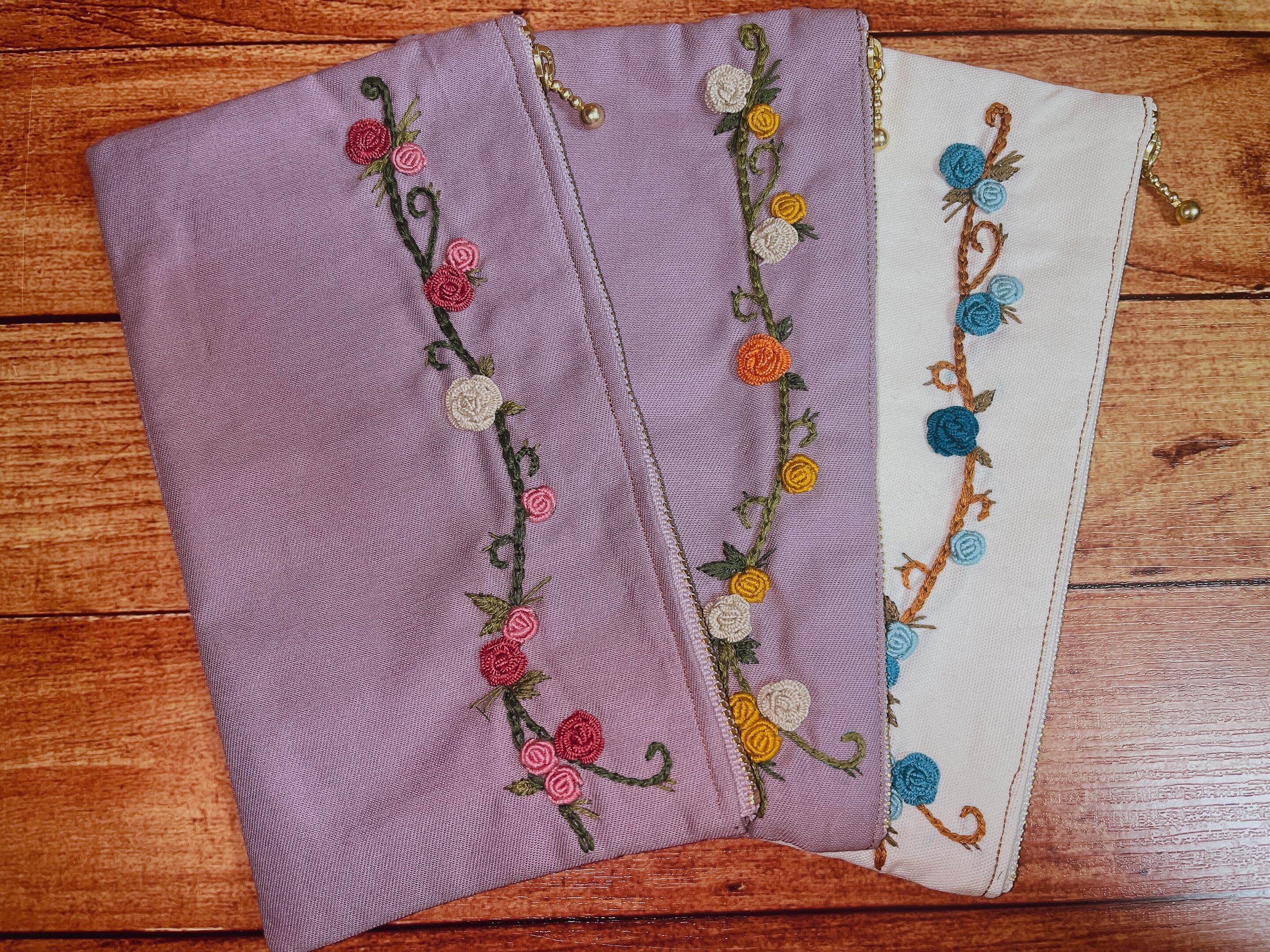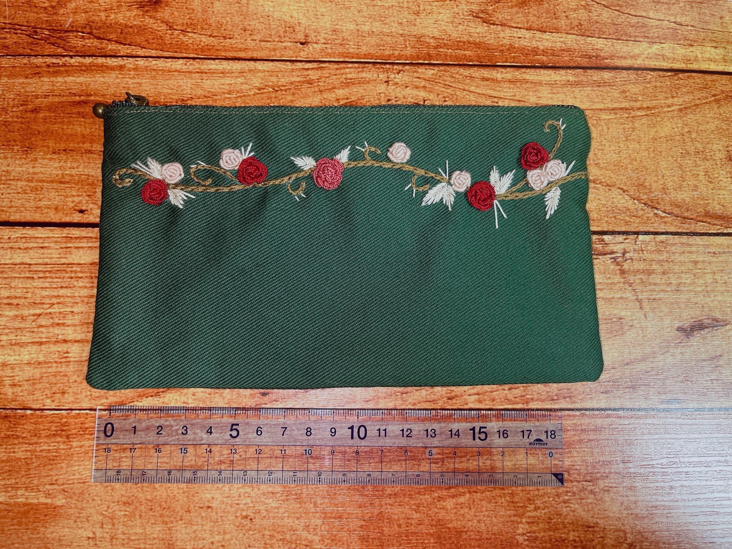 美しい薔薇と蔦のデザインが施された、12cm×21cmのフラットポーチです。