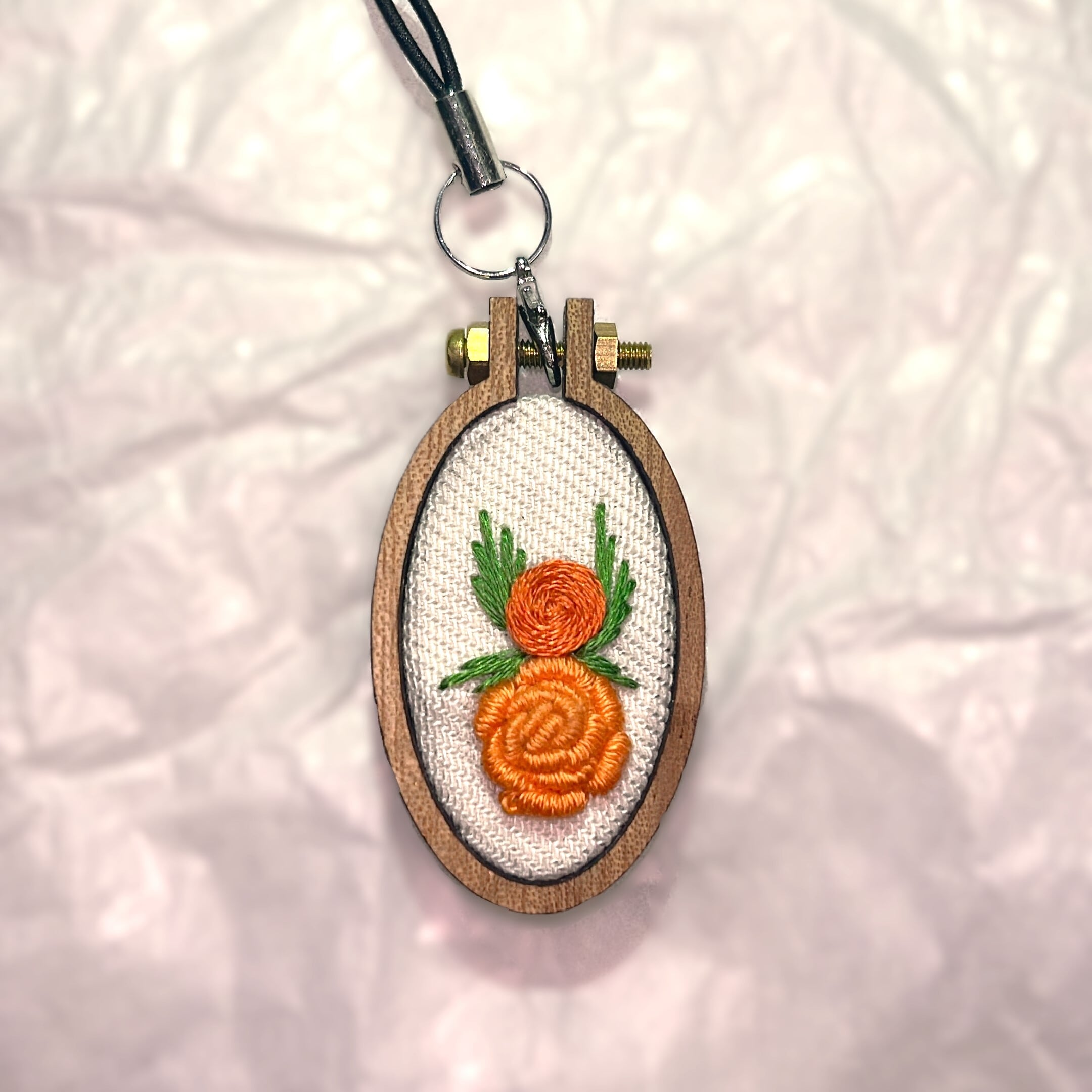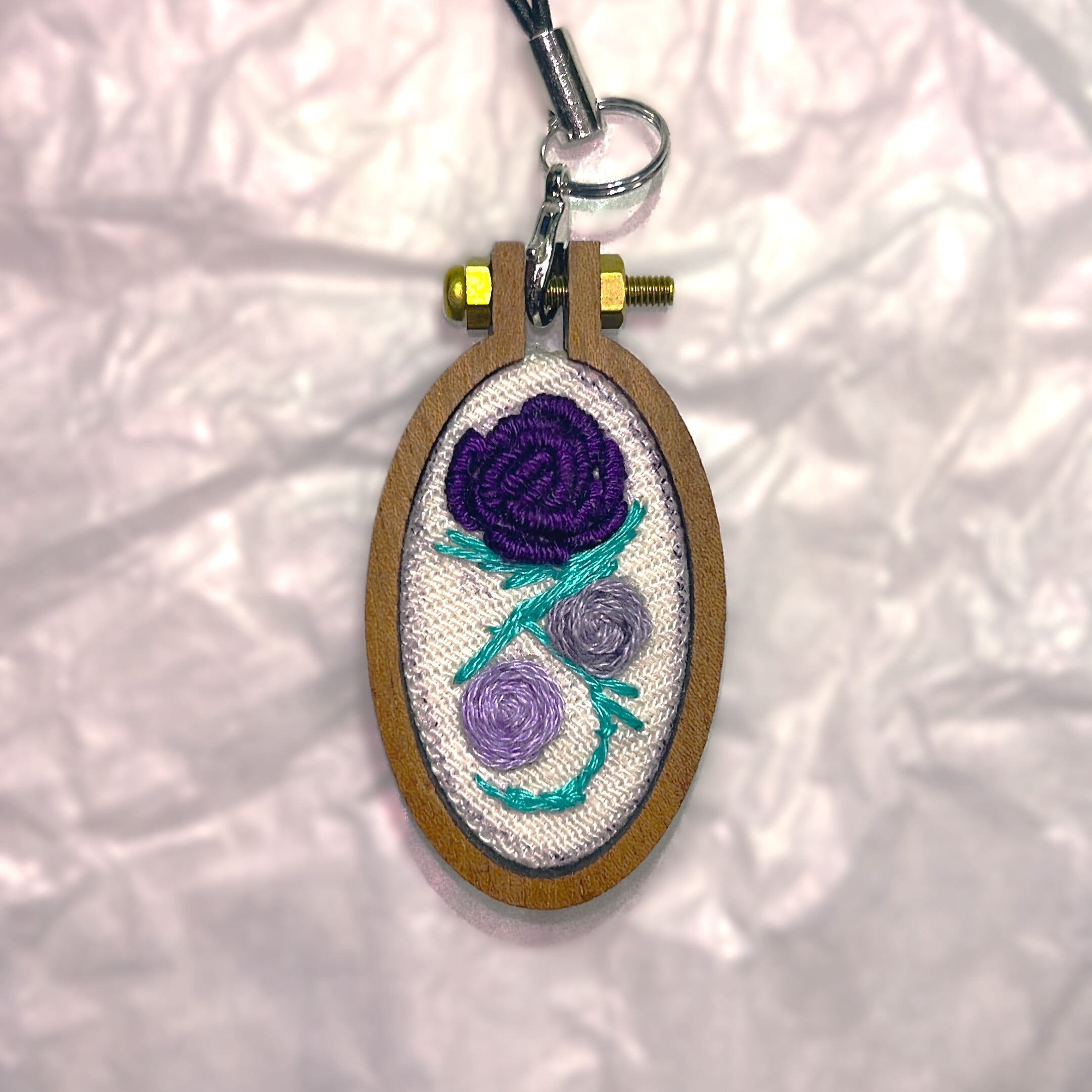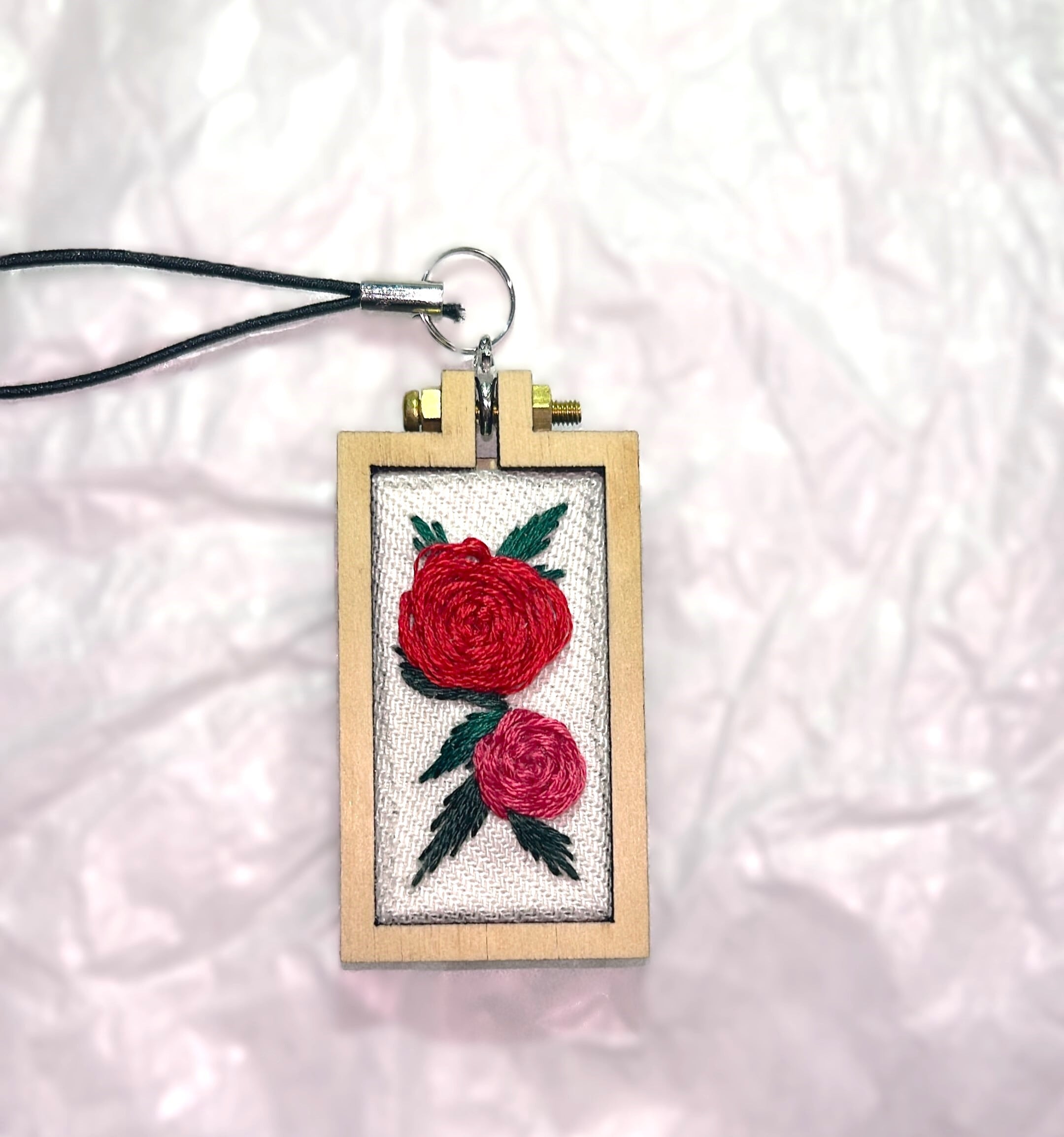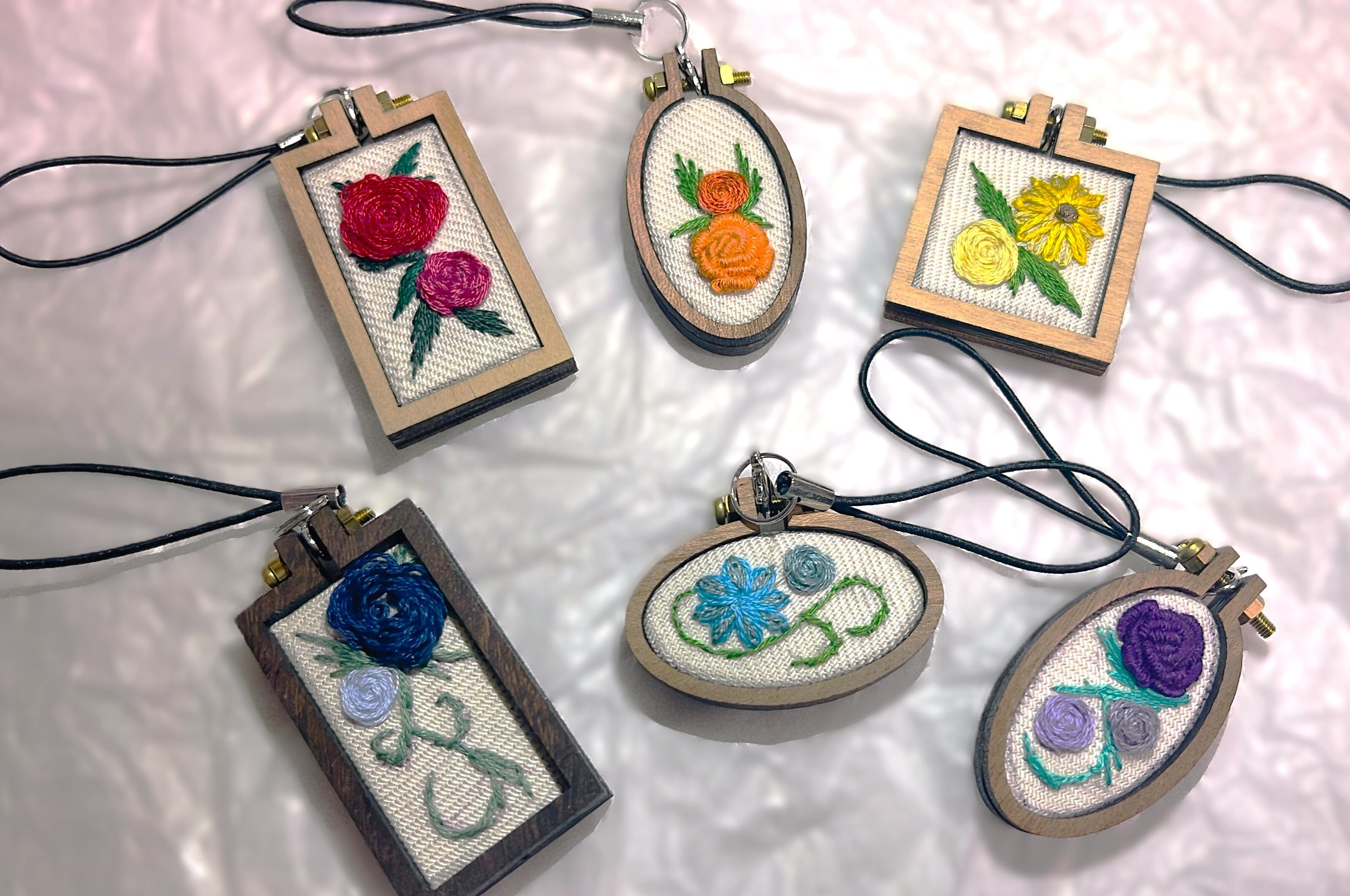 一針一針丁寧に縫い上げた花モチーフは手刺繡ならではの暖かさを感じて頂けることでしょう。配色も作者が一つ一つ選びぬいたものです。